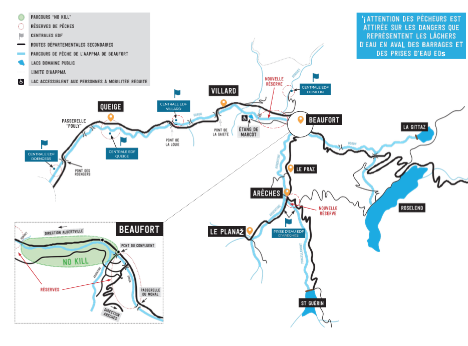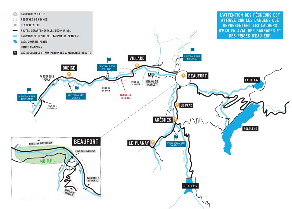 Le domaine de 1ère catégorie propose une grande diversité de sites : des grands lacs de retenue comme Roselend aux petits lacs naturels de montagne, des petits ruisseaux à la grosse rivière torrentueuse.