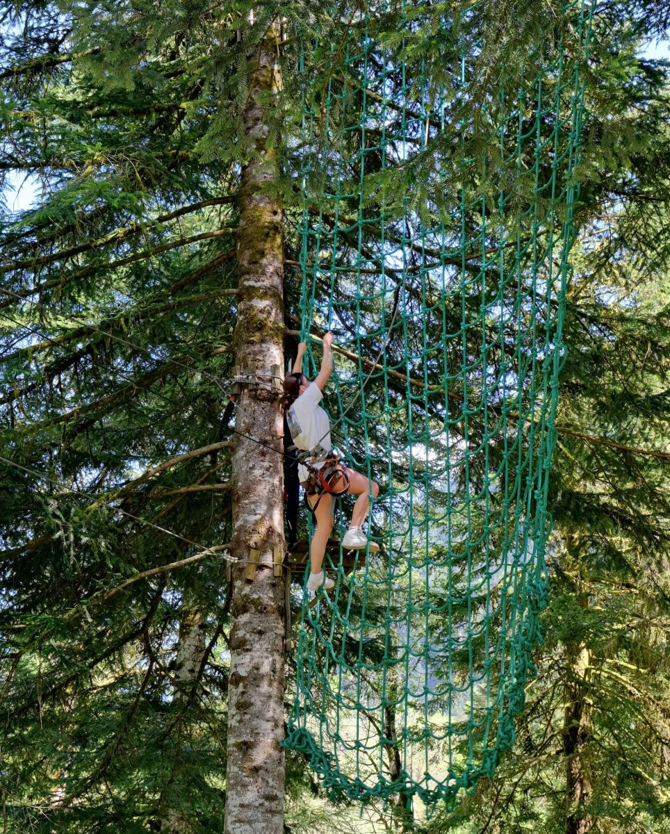 Avec plusieurs parcours adaptés à tous les âges et niveaux – du Parcours Écureuil dès 2 ans à la Grande Aventure dès 1m30 – chacun peut trouver son défi. Petits et grands évoluent sur près de 70 ateliers, entre passerelles, filets et ponts suspendus. Pour les plus téméraires, place aux sensations fortes avec la tyrolienne géante au-dessus du plan d’eau de 250 m de long, ou encore le spectaculaire Quick Jump, un saut dans le vide assisté depuis plus de 12 m de haut.