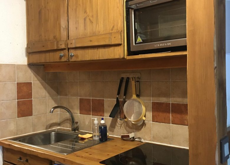 * coin cuisine tout équipée avec 3 plaques, mini four, lave vaisselle...