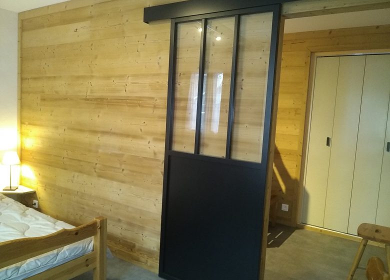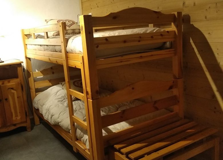 * Coin cabine fermé : 2 lits simples superposés 90 (entrée par chambre double)