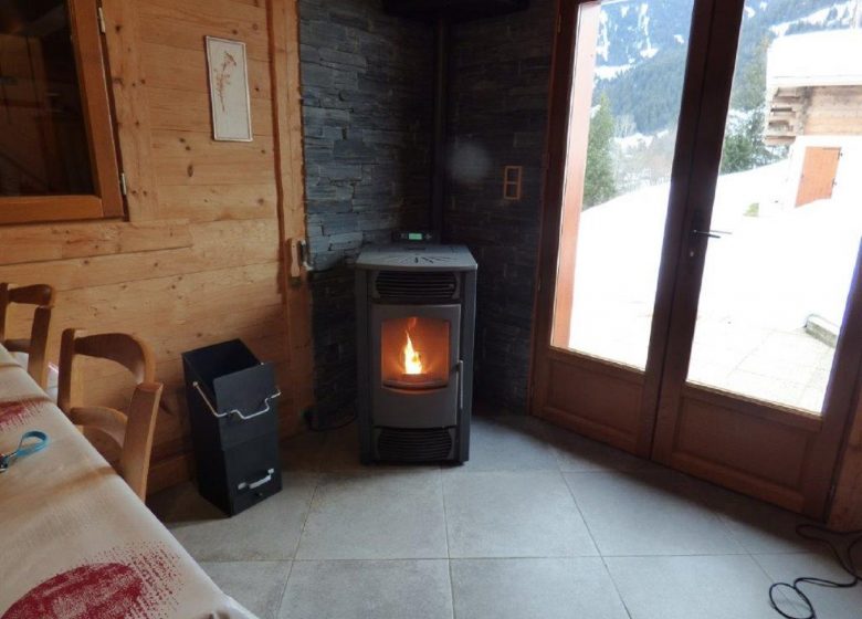* Séjour de 16 m2, poêle à pelets, banquette, TV