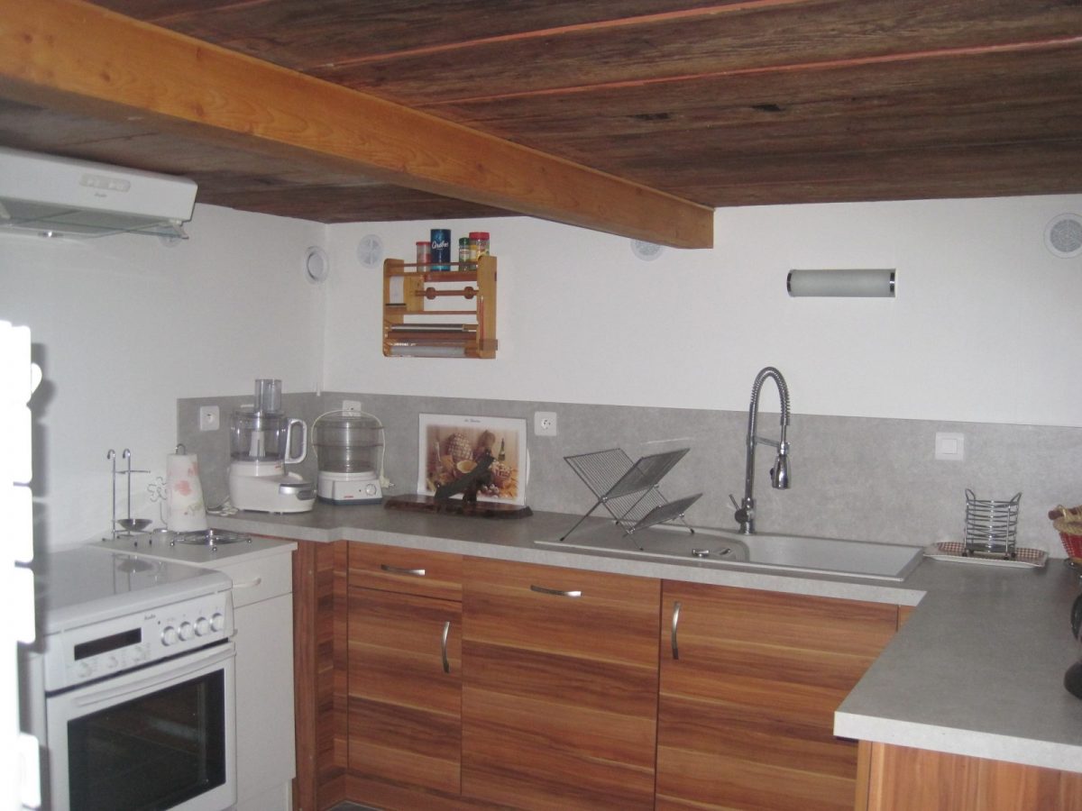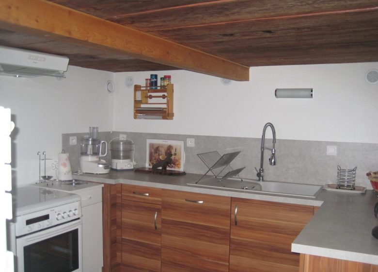 * Cuisine aménagée avec frigo-congélateur, cuisinière, lave linge, lave-vaisselle