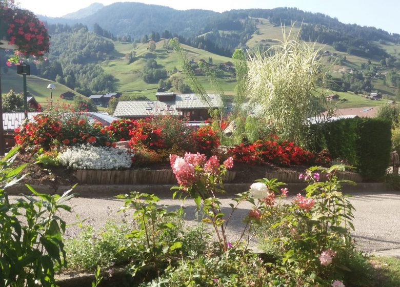 * l'hiver, à 100 mètres du départ des pistes du Grand Mont, devant l'arrêt ski bus