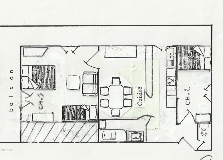 * Séjour/cuisine équipée avec four, micro-onde, télévision