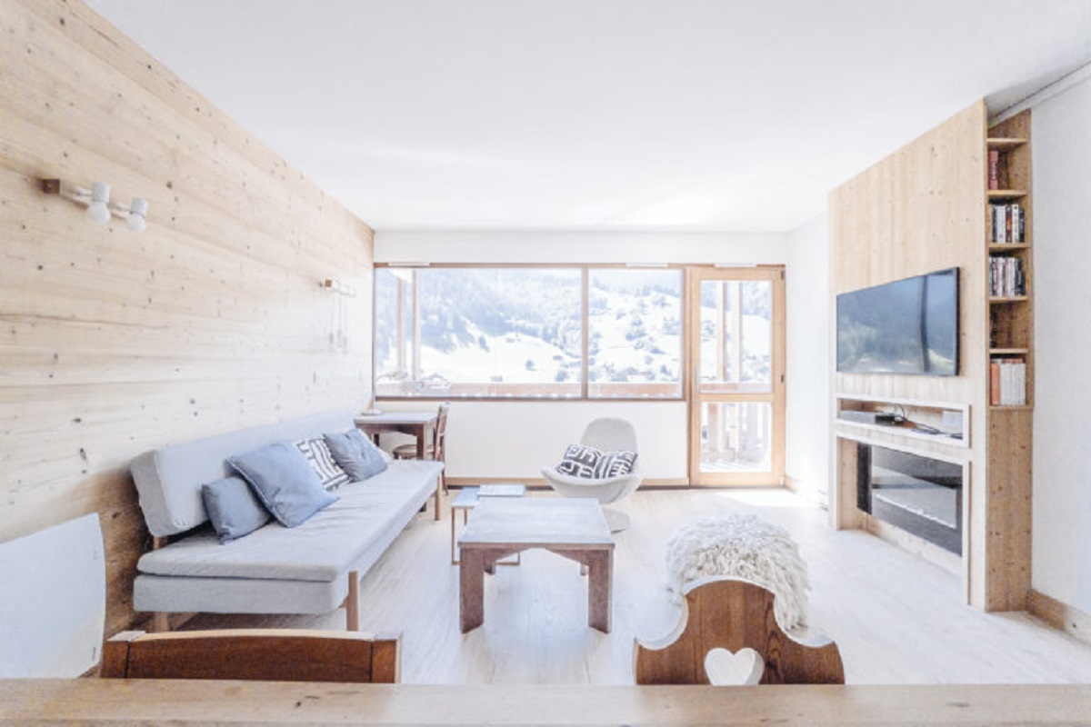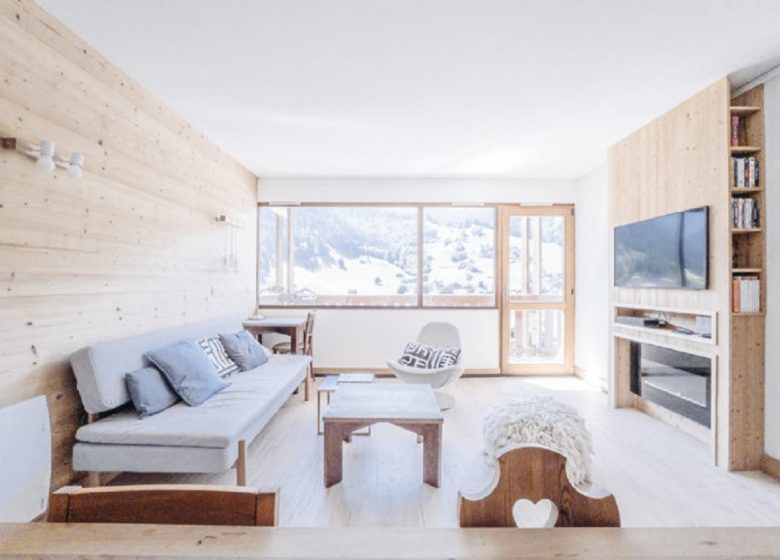 - Un séjour avec un canapé 80×200 (1 couette 240×200 et 2 oreillers) et une télé grand écran, cheminée électrique, pouf, fauteuil…