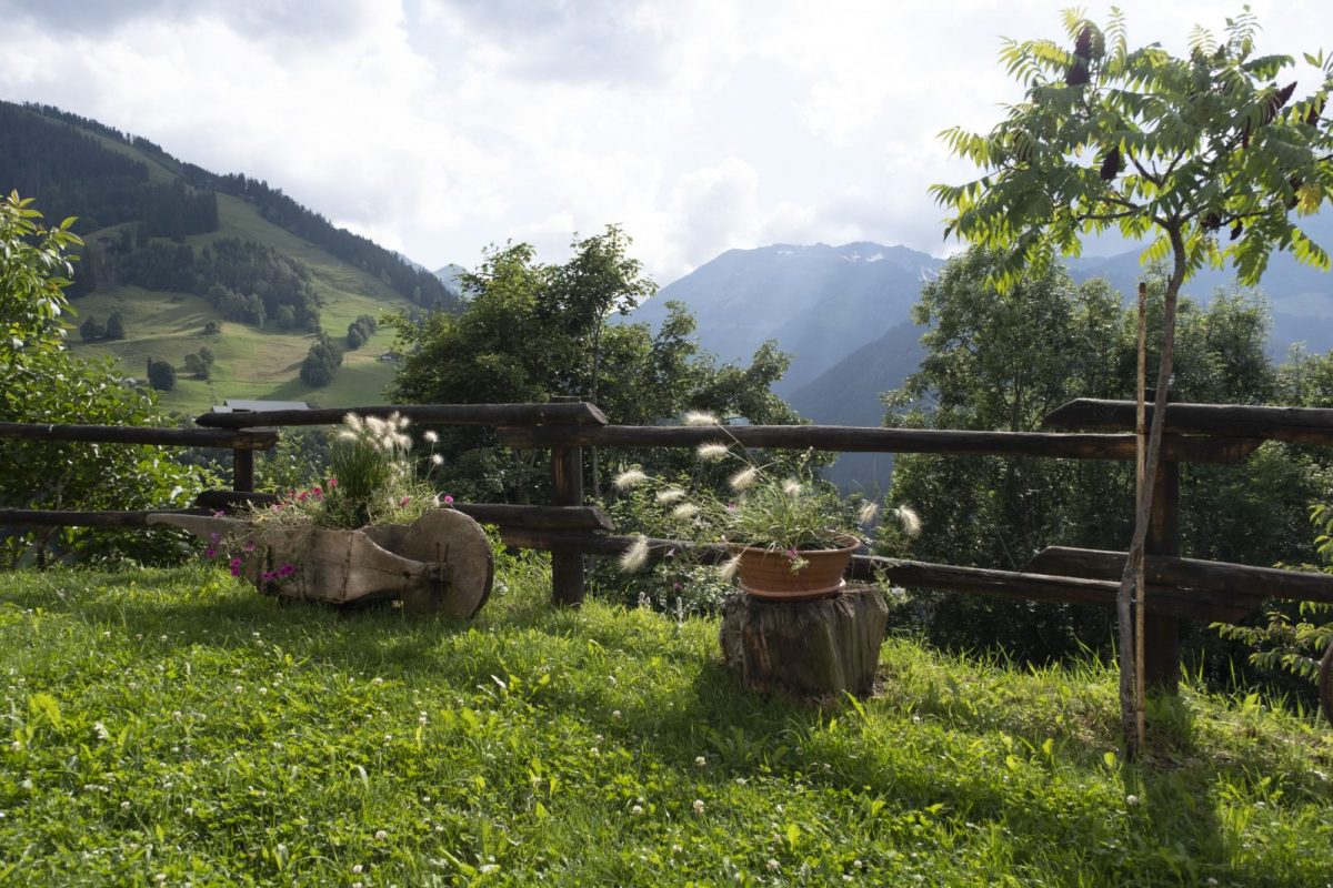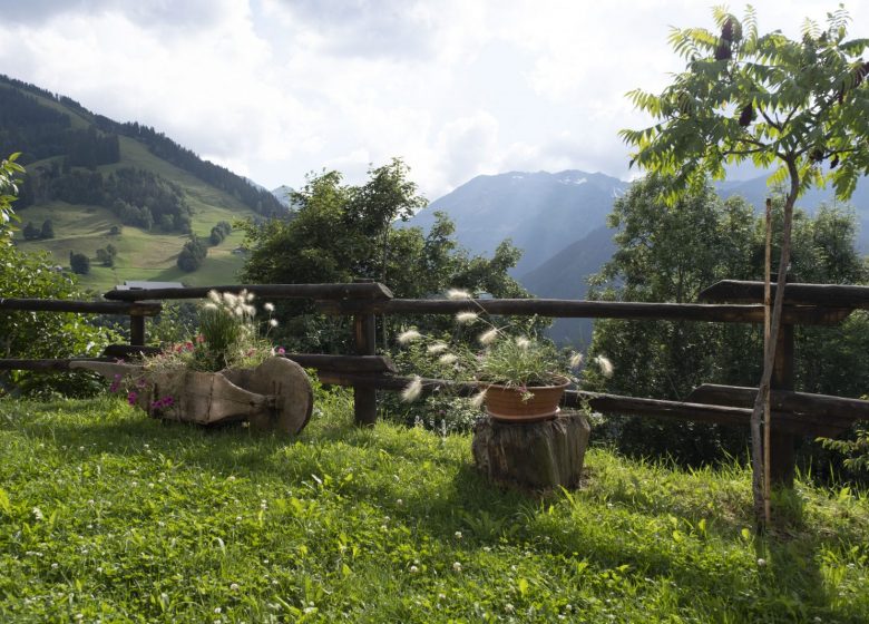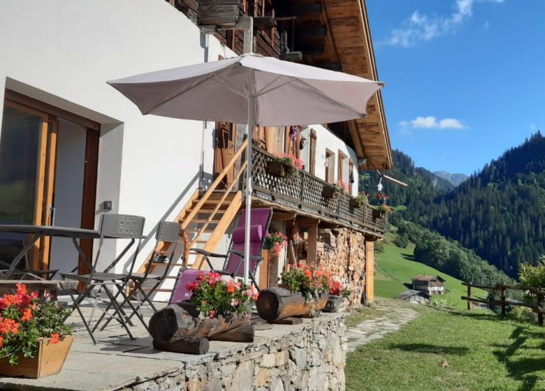 Terrasse vue sur les montagnes et le village.