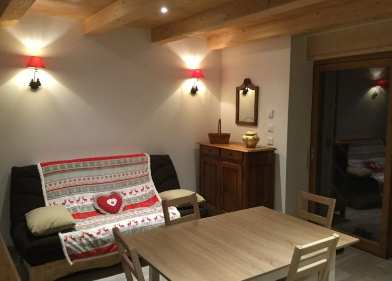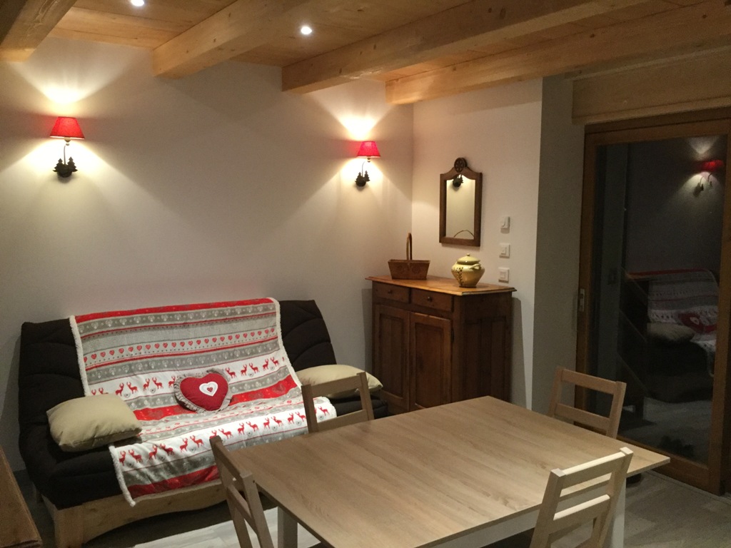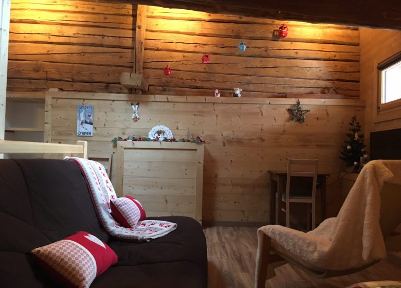 - Séjour en mezzanine avec un canapé convertible 130cm + 2 lits simples