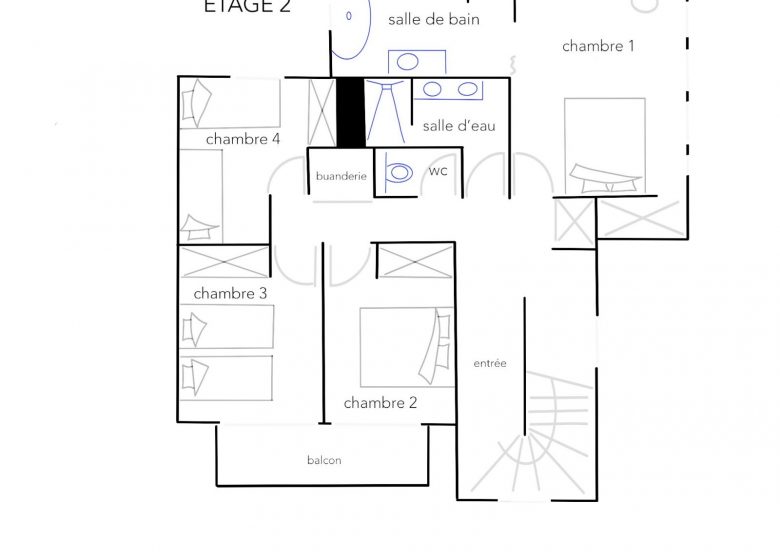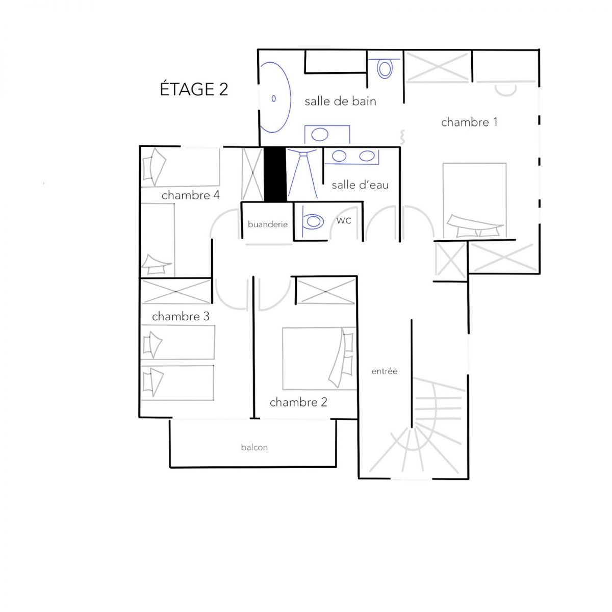 * chambre parentale : 1 lit double 160, salle de bain, WC