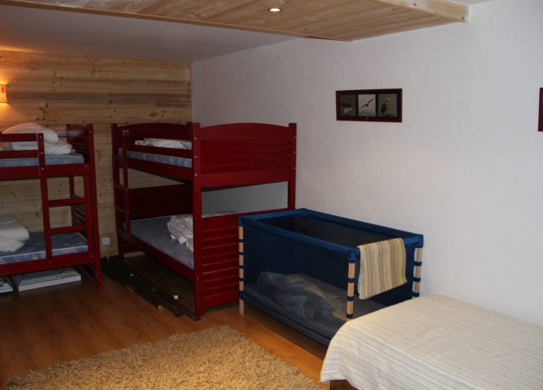 * 4 chambres (3 avec lit double et 1 avec 4 lits simples superposés)