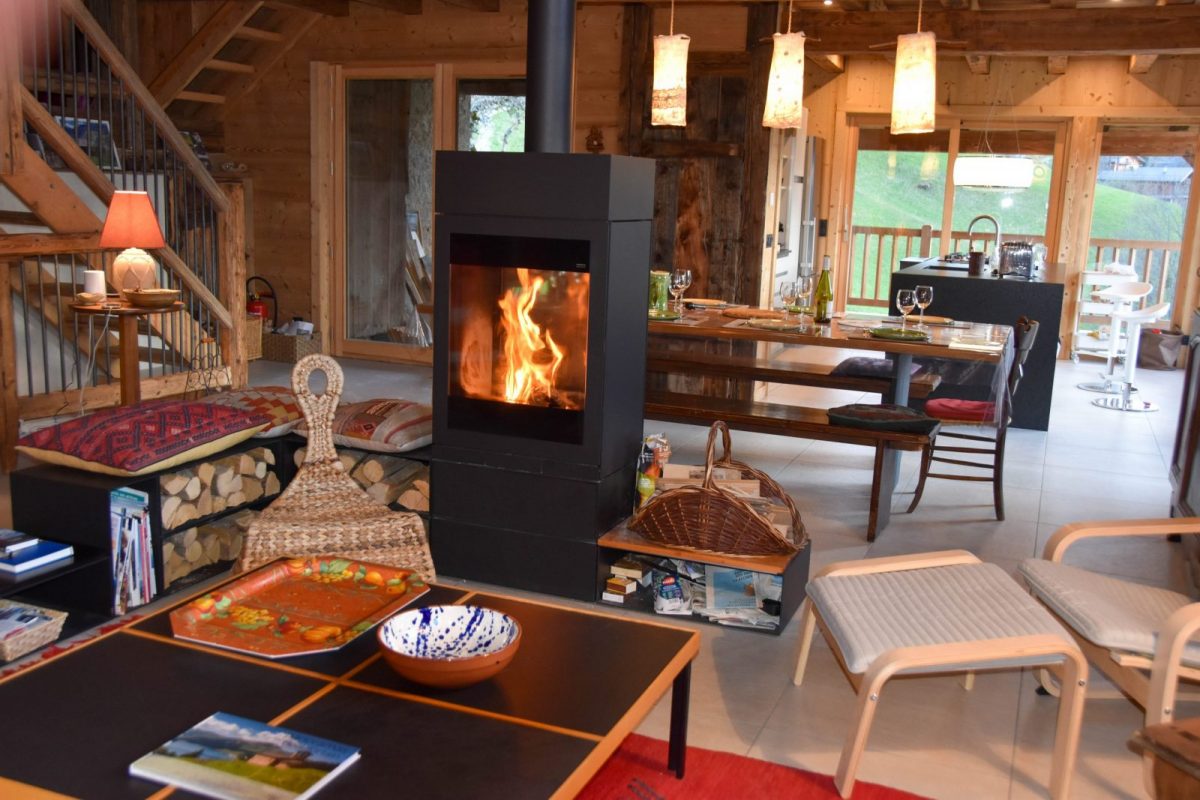-Grande pièce de vie avec poêle-cheminée