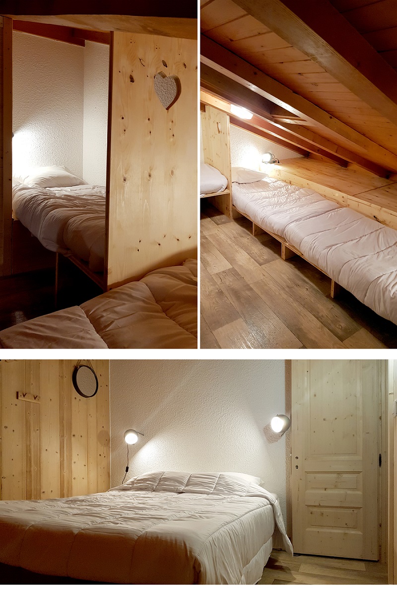 1 chambre mansardée avec 3 lits 1 pers (90x190 et 2x 80x190),