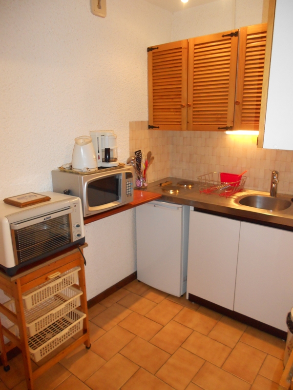 * Cuisine équipée avec mini four, micro-ondes, bouilloire, cafetière, grille pain etc...