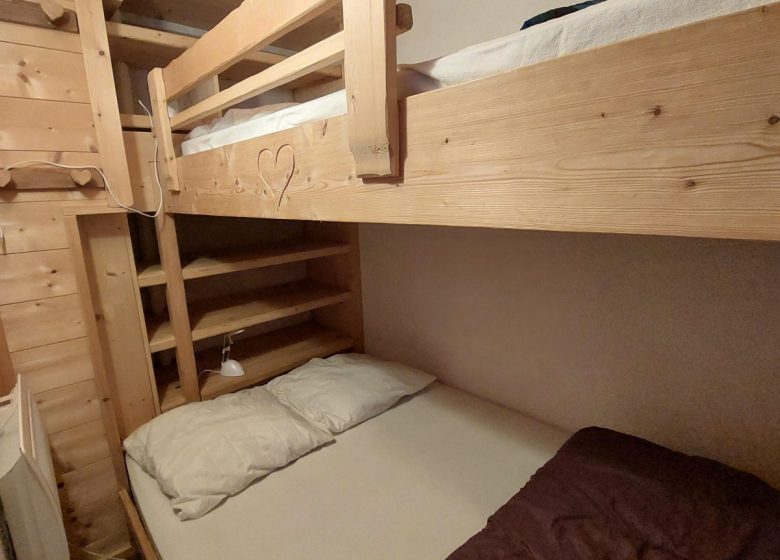 - un coin cabine fermé avec 1 lit 130x190 + 1 lit superposé de 90x190