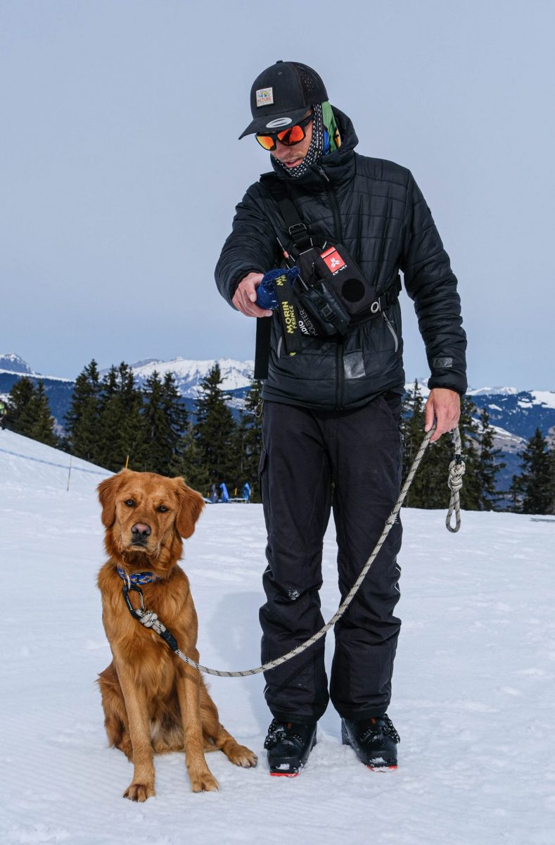 Nicolas P. travaille pour la station d’Arêches-Beaufort ; avec son fidèle compagnon, Usco, Golden retriever de 8 mois, il s’entraîne dans l’objectif de se faire diplômer en décembre prochain. Nicolas a rejoint une équipe de civils avec qui il va s’entraîner toute une journée sur le plateau du Cuvy ce 21 février 2024.