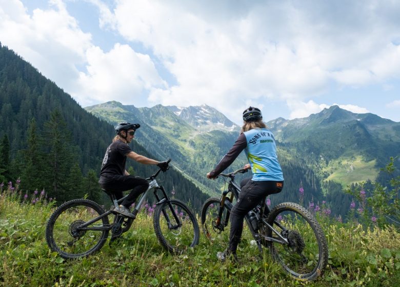 Départ : Place de l'Eglise d'Arêches 1/ Direction route de Saint Guérin puis route des Envers. (route goudronnée jusqu'à l'entrée de la forêt) 2/ Vous entrez en forêt pour 4 km de piste avant d'atteindre le départ du télésiège des Bonnets Rouges. 3/ A gauche et après le départ du TS des Bonnets Rouges démarre la descente vers l'Ami sur sentier pour rejoindre la route de Saint Guérin. 4/ Sur la route de St Guérin, monter jusqu'au barrage sur 1.6km et prendre à gauche la route du Cormet d'Arêches sur 700m puis tournez à gauche 5/Suivre cette piste en direction du Col du Pré sur 2,6km. 6/ Poursuivez sur un sentier (sur 2,7km) aménagé de quelques passerelles jusqu'au Col du Pré . 7/ traversez la route et empruntez la piste devant le restaurant Chez Marie Rose pour remonter dans la forêt du Bersend. 8/ suivre la piste jusqu'au panneau indiquant "la forêt du Bersend" 9/ De là, l'itinéraire est le même que "l'officieuse" enduro de 4km jusqu'à Arêches.