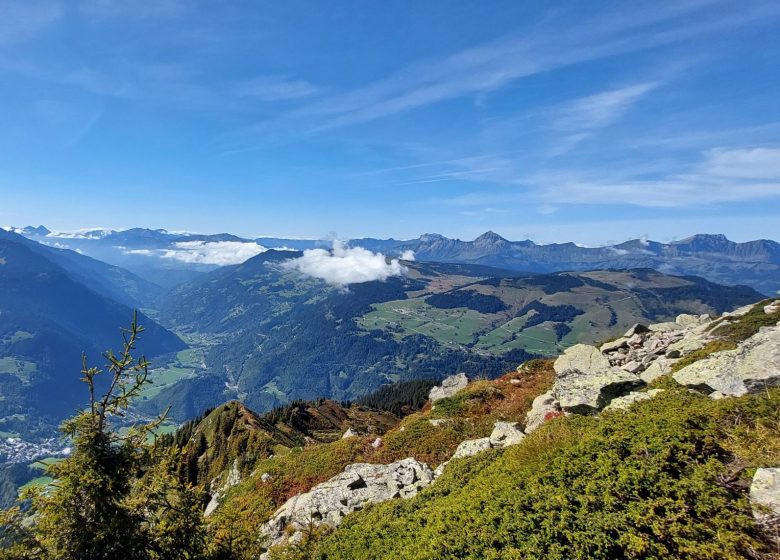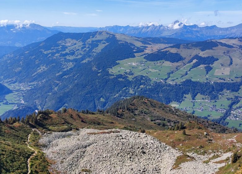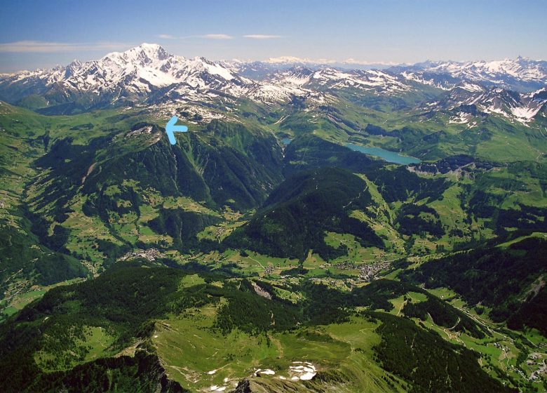 Durant le mois d'août, vous trouverez sur le parcours de succulentes myrtilles. Vous traverserez une forêt d'épicéas puis traverserez une aulnaie : les aulnes verts sont des arbustes qui servaient autrefois de bois de chauffage utiles pour la fabrication du Beaufort en alpage. Vous pourrez admirer la vallée d'Hauteluce avec son village et son clocher à bulbe.