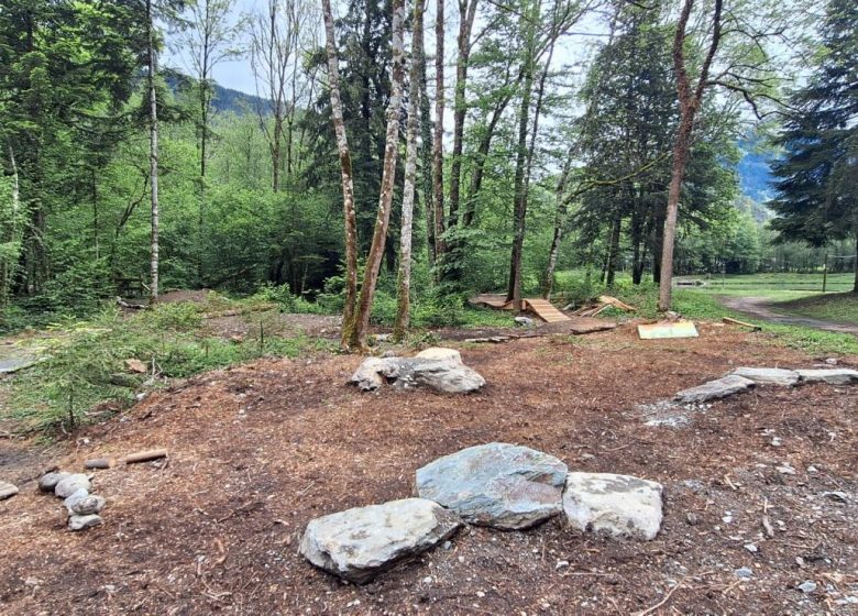 Zone d'initiation permettant à tous de découvrir la pratique du VTT avec des modules adaptés.