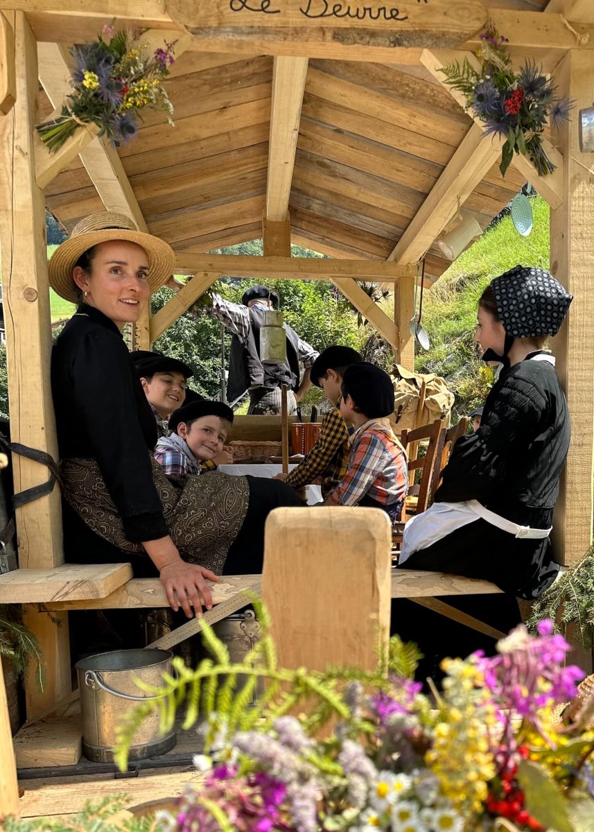 « Je grimpe sur le char de Valérie et Fred faire découvrir les métiers d’antan, les coutumes ancestrales. Cette fête rassemble les habitants du village et les gens de l’extérieur. Fait perdurer la mémoire, les traditions paysannes — le monde dont je viens. »