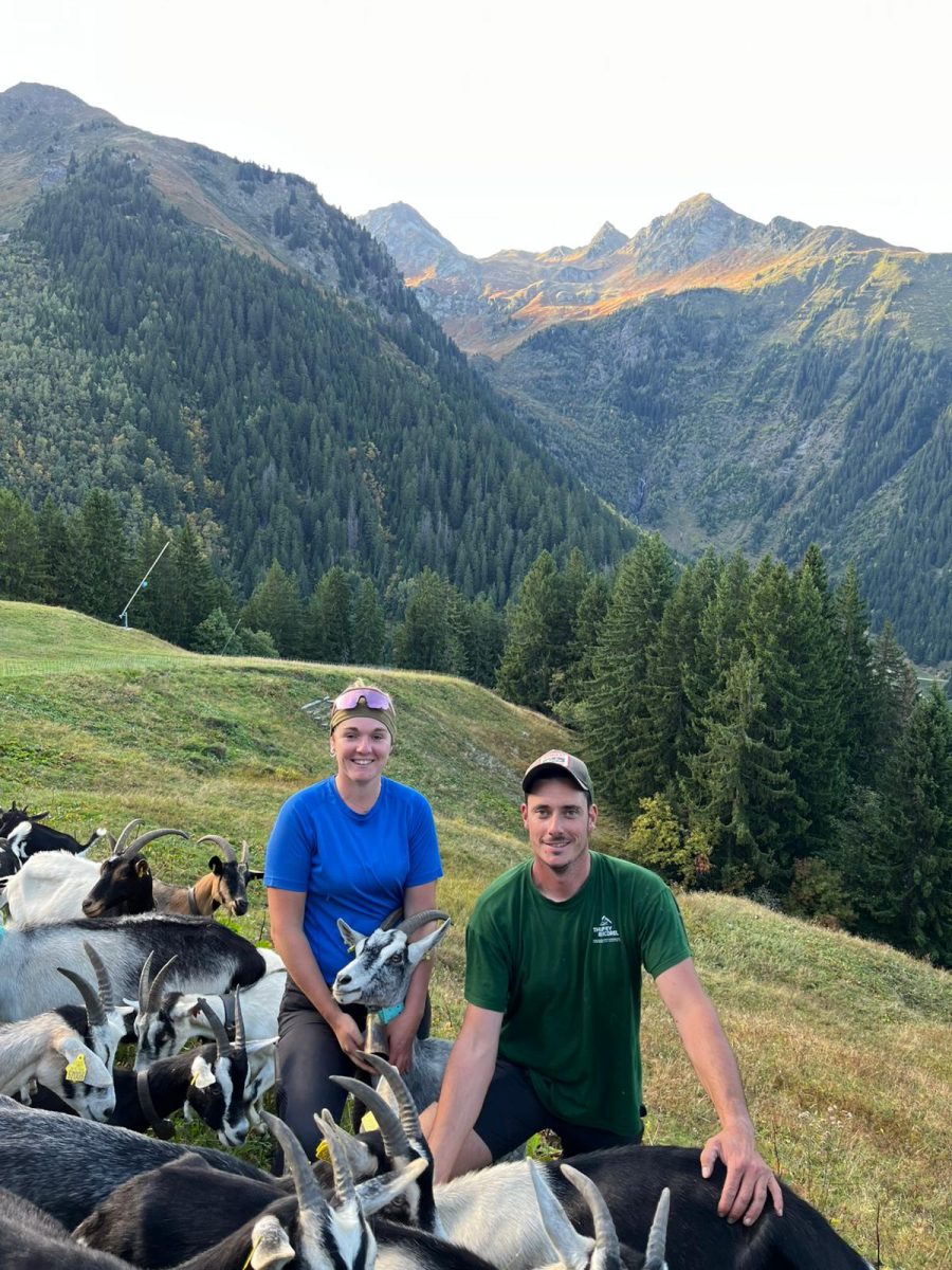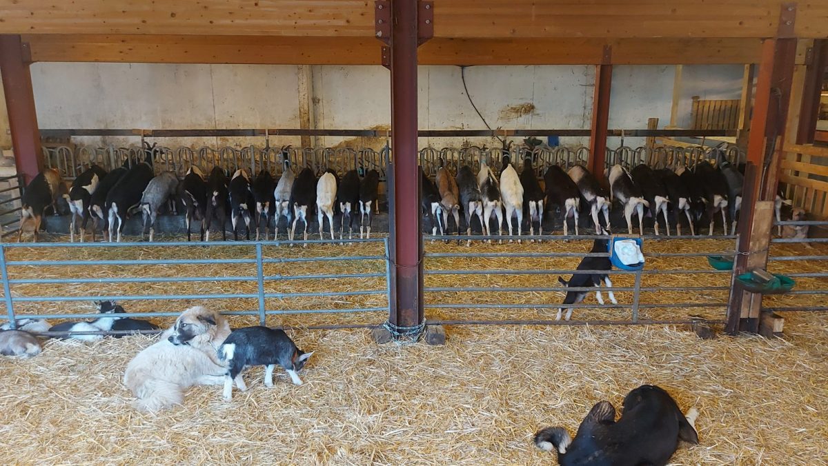 Venez découvrir notre troupeau de 160 chèvres alpines chamoisées et leurs cabris et assister à la traite et à la fabrication du grataron d’Arêches.